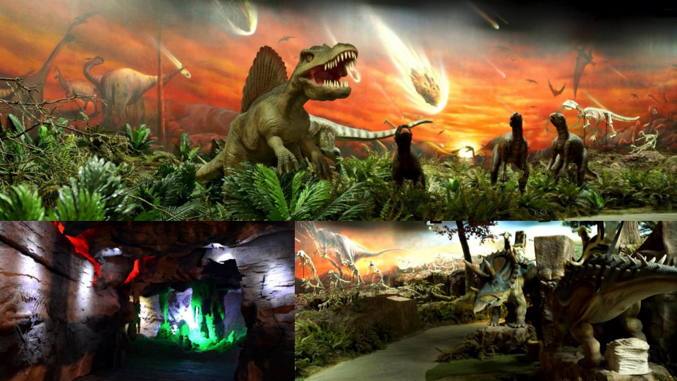 展馆主题以江海佛国,探寻生命本源与闯入史前, 跨界真人闯关为宣传点,展馆由古生物娱乐城堡、 石林探秘、迷失世界、寻踪之路、开心城堡、深 海探源、陆上征途、天空猎奇等八个部分组成。